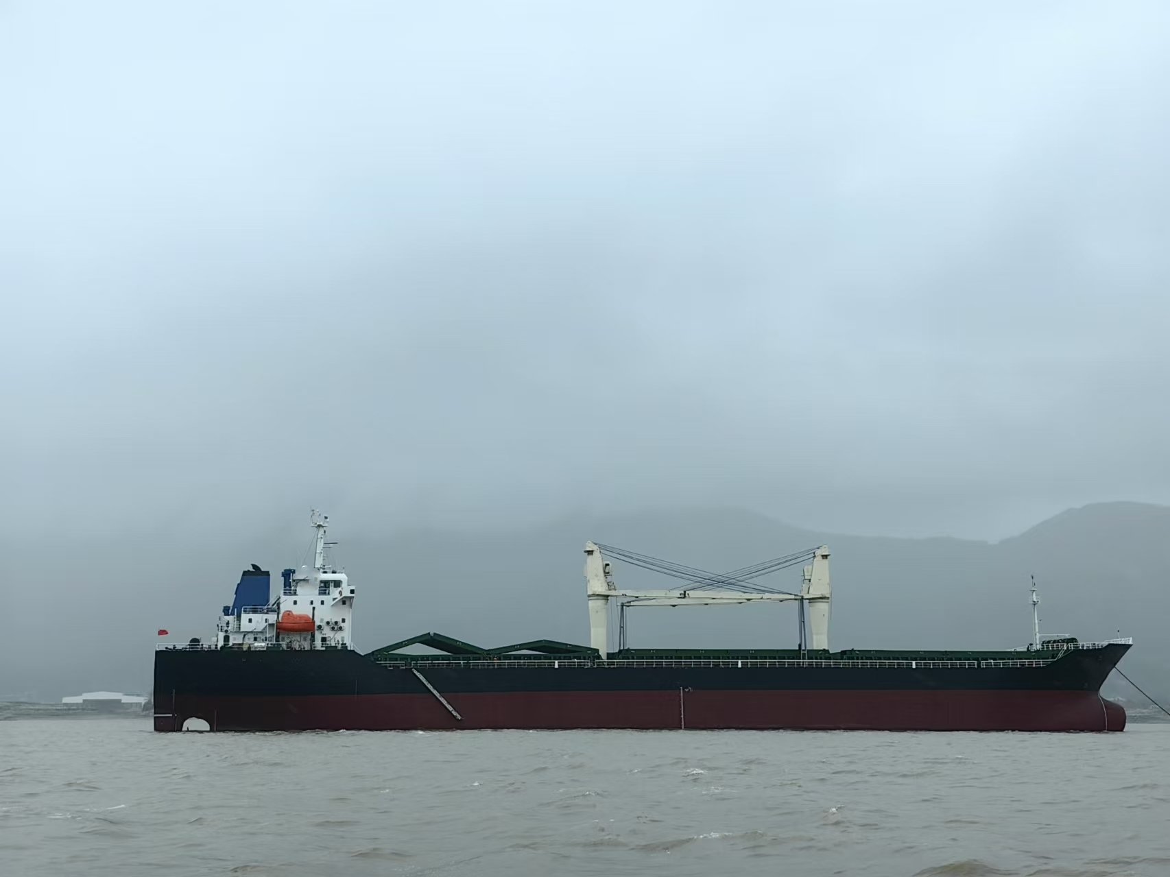 该船目前在航,为内改外散杂货舱,BWTS已安装,配备2台30吨克令吊。