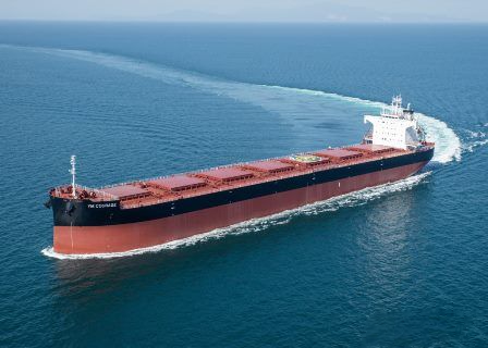4月13日,日本新来岛Sanoyas造船(原Sanoyas造船)水岛制造所建造的巴拿马型散货船“YM COURAGE”号命名交付。